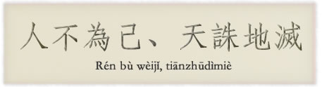 Jeśli człowiek sam nie pilnuje siebie, Niebo i Ziemia zniszczy go; każdy niechaj pilnuje siebie, a złe duchy uciekną daleko.