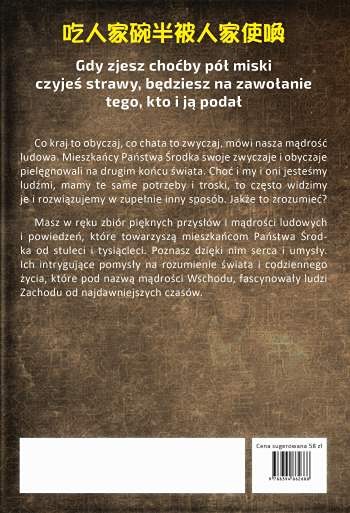 Masz w ręku zbiór pięknych przysłów i mądrości ludowych i powiedzeń, które towarzyszą Chińczykom od stuleci i tysiącleci. Poznasz dzięki nim serca i umysły. Ich intrygujące pomysły na rozumienie świata i codziennego życia, które pod nazwą mądrości Wschodu, fascynowały ludzi Zachodu od stuleci.