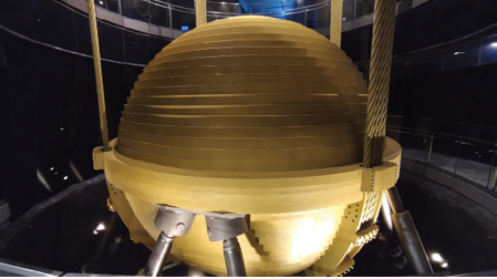 Na zdjęciu poniżej widzimy wygaszacz z Taipei 101, udostępniony do podziwiania dla turystów. Sfera ma średnicę 5,5 metra i waży 660 ton – 0,35% wagi całego budynku. Zbudowano go z 41 warstw stalowych sztab. Jest drugim co do wielkości na świecie i jednym z dwóch dostępnych publicznie.