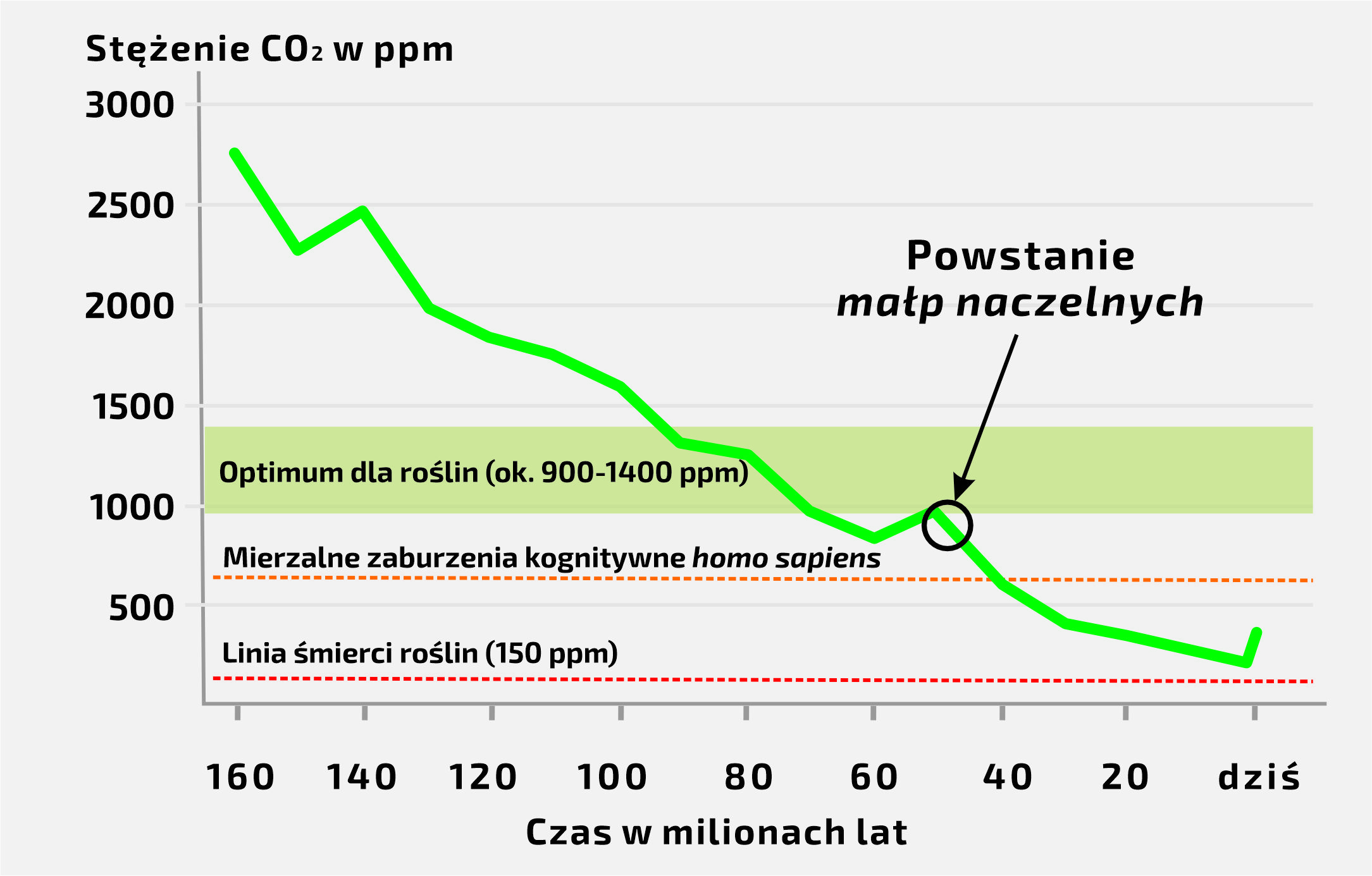 Zobaczcie też wykres spadku zawartości CO2 ostatnich kilkudziesięciu milionach lat.
